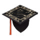 Elegant gold tiara, glitter gradution cap on floral swirls background .