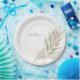 Perfect elegant plate for your no fuss wedding or really any party you are planning. The gold detail with the simple greenery adds a touch of elegance and the ability to customize with each attendee's name or the family name of the wedding. So many possibilities to make your party planning a breeze.