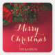 Elegant Gold Typography Red Holly Merry Christmas Square Sticker