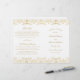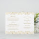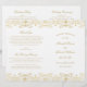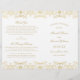 Lavish gold damask flourishes frame "Marriage Ceremony Uniting" in elegant script on a clean white background for a ceremony program with old-world opulence. The intricate gold filigree pattern creates a luxurious border, with a coordinating vintage-inspired backing. Inside pages are fully customizable for your bridal party, ceremony order, and a personal thank you message on the back cover. Programs are printed on text-weight paper and arrive flat, requiring a simple center fold.