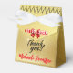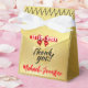 Express your gratitude with this elegant gold wedding favor box, personalized with the couple's names and special date. Designed with a luxurious white ribbon and a chic gold texture, this favor box adds a touch of class to any wedding celebration. Perfect for gifting sweets, small keepsakes, or special tokens of appreciation. Make your big day unforgettable with this custom-designed thank you box