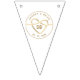 Simple, elegant, minimal, modern white wedding bunting flags, with monogram and gold rope heart.