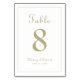 Wedding Table Number event party sign design features a classic elegance with contemporary chic gold-tone color on a classic white background. Personalize wedding table design with your name, wedding date and table number in trendy lettering and script. The back of the card is a duplicate of the front. Follow our easy to use modern template to easily customize and order one for every table with your individual table numbers. ******This template made need to be adjusted with the design tool to visually center double digit table numbers ten and greater. ***** Contact us at invitationsuites@gmail.com or using the message link in this listing if you have questions, need assistance or have a custom color request for this design.