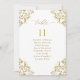 Elegant Vintage Gold Wedding Seating Chart Cards: Use these vintage, classic table lists for your seating chart at your wedding or event. This design features the word "Table" in an elegant calligraphy with an ornate vintage corners design for a luxe look. It's set in gold, but you can change the color to anything you like! Just click "customize more" and click on the element to change the color.