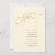 This seating chart card is not just a practical element of your event; it's a visual testament to your commitment to creating an occasion that's as tasteful as it is memorable. The fusion of cream and gold, coupled with the ornate calligraphy, transforms each card into an artistic statement that encapsulates the essence of your celebration.