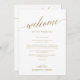 These elegant gold wedding welcome & schedule of events cards are perfect for a simple wedding. The neutral design features a minimalist card decorated with romantic and whimsical faux gold foil typography. The front of the card features a welcome letter and the back of the card features the wedding itinerary. These notes are perfect for destination weddings and hotel guest welcome bags.
