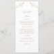 Elegant gold and white menu. Long. Wedding. Event. Gold text.
