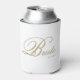Bride can cooler. Elegant gold script Bride on a white background with wedding date in classic block text at bottom right. The wedding date can be removed by clearing the text field, or personalized with bride name or bride and groom initials.