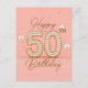 Elegant Golden Confetti & Balloons 50th Birthday Postcard