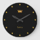Elegant Golden Crown & Golden Dots on Black Large Clock
