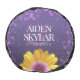 Commemorate your special day and dress up any room with this celebratory floral-themed nuptial pouf, which features elegant white lettering with lavender purple confetti and golden African daisies on a violet purple to black background. Customize with the newlyweds' names, and wedding date. Reverse shows identical design.