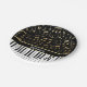 An elegant stylish design for the piano player or musician featuring golden coloured musical notes and a piano keyboard on a black background with gold and black strip to add the name of your choice to create a unique personalised music themed gift for any occasion