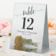 These tent signs will not only help your guests find their tables, they'll also make your wedding reception more beautiful. The design is both elegant and romantic featuring a single gold ochre or mustard yellow colored rose lying on its side reflecting in water with waves and ripples. The title is in lacy script calligraphy with bold numbers so your guests can easily find the right table. There is room for the names of the couple and the wedding date.