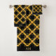 Elegant Golden Pattern and Monogram on Black Bath Towel Set