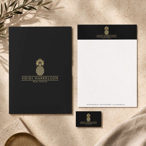 Elegant Golden Pineapple Logo Business SuiteDesigned by Laurie F.