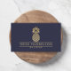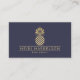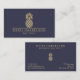 Elegant Golden Pineapple Logo on Dusky Blue Business Card