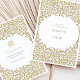 Plain white envelopes are included with paper invitations and will come to fit the invitation size you select. If you don’t need the envelopes, you may choose to not receive them by selecting the dropdown below "Envelopes" and choosing "None." If you’d like to have a design on your envelopes, you can browse all of these available envelopes to find the design that complements your Elegant Golden Vine Wedding Invitation Suite.