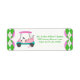 This personalized return address label is perfect for golf-loving parents-to-be. The whimsical golf cart is playfully decorated with pink glitter, a pair of mommy's shoes, tiny baby booties, bottles, and pacifiers—adding a fun, charming touch to your baby shower gratitude.