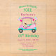 This elegant 55th birthday invitation showcases a charming pink golf cart decorated with balloons, cake, and pastel-colored gifts—perfect for celebrating a stylish woman’s special day. The background features a classic pink and green argyle pattern, capturing that timeless preppy golf aesthetic loved throughout the golf world.