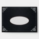 The elegance of a black wedding invitation customized envelope starts the fascination of your gothic or Halloween wedding. An oval for the address and delicate white flourishes adorn the front. The interior of the envelope in a surprising contrast to the sedate foram blackness with a pattern of brilliant crimson, purple and orange autumn florals that coordinates with the invitation and enclosure cards. Embrace the beauty of the macabre and the allure of the unknown. This wedding mailing envelope promises your wedding to be a mesmerizing experience, blending romance with a hint of eerie magic. The gothic return address font, the ornate flourishes and the startling but beautiful interior make a bespoke and elegant envelope for your wedding mailing.