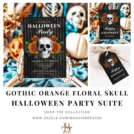 Gothic Orange Floral Skull Halloween Party SuiteDesigned by Maggie B Design