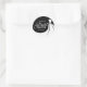 A chic bridal shower favor sticker featuring an elegant wedding gown on a black background with a beautiful script white text for your special bridal shower details. You can customize the background color to coordinate with your wedding theme. Designed by Thisisnotme©