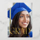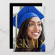 Modern style typeface of "Grad" letters with full bleed photo. Choose your foil color, gold, silver or rose gold. Photo backer optional. Add an event details to the back side, or future plans, or more photos as desired.