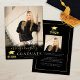 Announce your high school or college graduate's achievement with this modern black and gold announcement card featuring an elegant faux metallic gold foil title CLASS OF 2026 and graduation cap and 2 photos (one on the front and one on the back) and your graduate's name in an elegant script. The back is designed to include information about your graduate's achievements, activities and future plans as desired. ASSISTANCE: For help with design modification/personalization, transferring the design to another product or if you would like coordinating items, contact the designer BEFORE ORDERING via Zazzle Chat or makeitaboutyoustore@gmail.com.