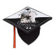 Design your very own motarboard for a graduation ceremony - This black and white design features an arch photograph of th graduate, a black graduation cap, elegant script font, name of school and class year. Congratulations to the graduate! All text and colors can be customized using the template provided.