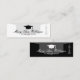 Elegant graduate name cards with academic cap logo. Black and white design. Colors can be changed. Printed on two sides. Classy script typography template. Available in different sizes.