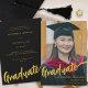 Elegant Graduate Photo Gold Script Black Announcement