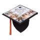 At the top, a classic graduation cap icon sits above the graduate's name, school name, and "Class of 2025" (or any year), all displayed in an elegant mix of script and serif fonts. Designed in a timeless black and white color scheme, this topper is perfect for standing out during the ceremony while also serving as a keepsake. Fully customizable, all colors, fonts, and text can be changed to match school colors or personal preferences, making it a unique and special addition to the big day.