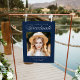 Elegant graduation party sign featuring "Congrats to our Graduate" displayed in white calligraphy script with a navy background. Personalize the navy graduation sign with the graduate's senior photo, name, school name, and graduation year. The simple photo graduation sign is perfect for celebrating both high school and college graduates!