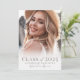 The back showcases a three-photo collage or photo band, along with the graduate’s name, school, and space for a personal message highlighting accomplishments and future plans. The design continues with a white background and beige font color scheme, creating a harmonious and sophisticated vibe. Fully customizable to suit your style or match school colors.