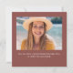 Elegant graduate script with custom name and class year note card includes two photos and editable text on the burgundy back of the card.