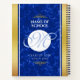 Make graduation an unforgettable celebration with this commemorative notebook! Elegant white and black serif and script lettering on a royal blue marble background bordered by gold foil and white circles add a memorable touch for this special occasion and milestone. Personalize with learning institution's name, initial (or logo), and graduating year.
