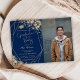Plain white envelopes are included with paper invitations and will come to fit the invitation size you select. If you don’t need the envelopes, you may choose to not receive them by selecting the dropdown below "Envelopes" and choosing "None." If you’d like to have a design on your envelopes, you can browse all of these available envelopes to find the design that complements your Elegant Graduation Party Navy Blue Invitation.