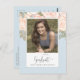 Celebrate your graduate in style with these graduation party invitations featuring a customizable photo template and elegant calligraphy script paired with modern typography. Accented with blush pink floral details and soft light blue tones, this chic and elegant design is perfect for any high school or college grad party invite. A beautiful blend of personalization and sophistication to set the tone for an unforgettable celebration.