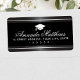 Elegant address labels featuring soft, gray and faux silver gradient borders top and bottom on a black background and a white or custom color graduation cap. Your name is printed in white in a romantic calligraphy script font with the address below. Stylish and classy design.