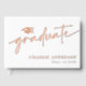 White or custom color graduation guest book featuring the text "graduate" in an elegant script font with a graduate cap above. The graduate's name and year are printed in the bottom right corner.