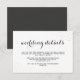 Elegant glam dark gray text and white background wedding guest details card with delicate faux metallic dots on front and back.