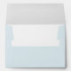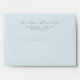 This wedding envelope features a clean, minimalist design with an elegant cursive script for the names and a classic serif font for the address details. The layout is centered on a light blue background, creating a serene and sophisticated look. With its simple typography and ample negative space, this design exudes a calm and refined mood, perfect for formal occasions like weddings. The customizable text allows you to personalize it effortlessly, making it ideal for your special day.