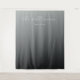 This elegant wedding backdrop features a minimalist design with a gradient gray background that transitions from light to dark. The focal point is the stylish cursive script font, which adds a touch of sophistication and personalization. Below, a simple sans-serif font provides clarity for any date or details you wish to include. The monochromatic color palette creates a serene and modern atmosphere, perfect for a timeless and understated wedding celebration.