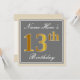Elegant, Gray, Faux Gold 13th Birthday + Name Invitation
