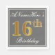 Elegant Gray, Faux Gold 16th Birthday; Custom Name Paper Napkins