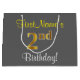 Elegant, Gray, Faux Gold 2nd Birthday; Custom Name Large Gift Bag