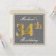 Elegant, Gray, Faux Gold 34th Birthday + Name Invitation