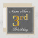 Elegant, Gray, Faux Gold 3rd Birthday; Custom Name Invitation