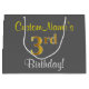 Elegant, Gray, Faux Gold 3rd Birthday; Custom Name Large Gift Bag