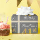 This simple and elegant wrapping paper design features a personalized message like "FirstName’s 41st Birthday" (with the "41st" having a faux/imitation gold-like coloring look) within a gray-colored square area featuring a simple border outline. The name is in an elegant white-colored script-like text, and can be customized. Wrapping paper like this could perhaps be used when wrapping birthday gifts for somebody who is celebrating their forty first birthday. [~Z0000222]